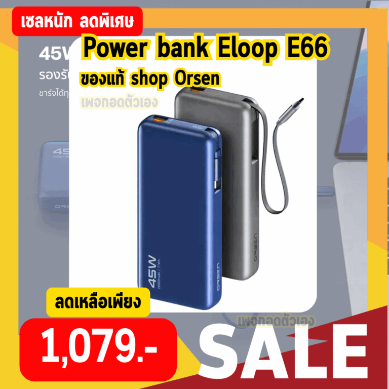 Orsen by Eloop E66 – พาวเวอร์แบงค์ 20000mAh สายในตัว ชาร์จเร็ว 45W