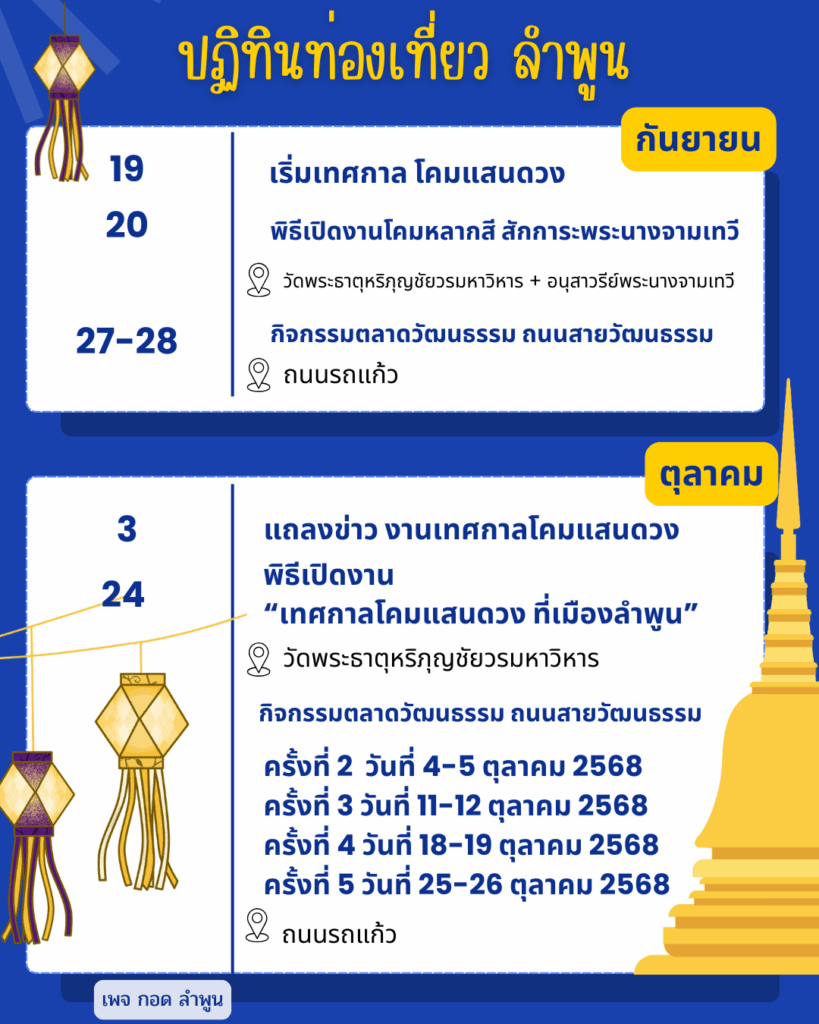 🎉 ชวนมาแอ่วลำพูน เมืองเก่าล้านนา อิ่มบุญ อิ่มใจ กับ เทศกาลสุดยิ่งใหญ่ ตลอดกันยายน – ธันวาคม 2568 🏮